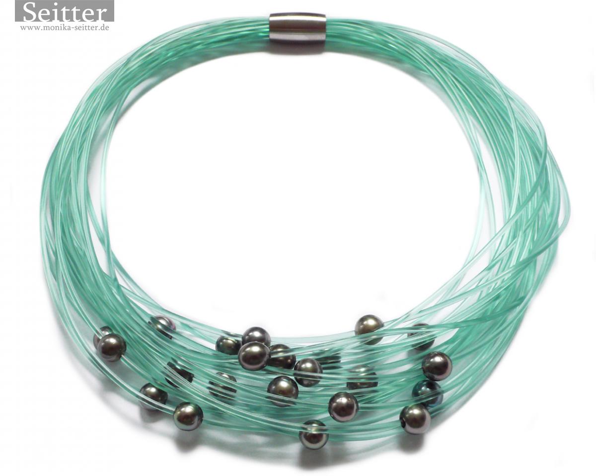 Gekonnt schlägt Monika Seitter, Düsseldorf, eine Brücke zwischen gediegener Goldschmiedekunst und aktueller Mode. Ihr Erfolgsrezept: Ein Mix aus feinsten Juwelen, Handwerkskunst und variablem, farbigem Kunststoff. Damit stieg sie rasch in den Olymp der wichtigsten deutschen Schmuckdesigner auf.