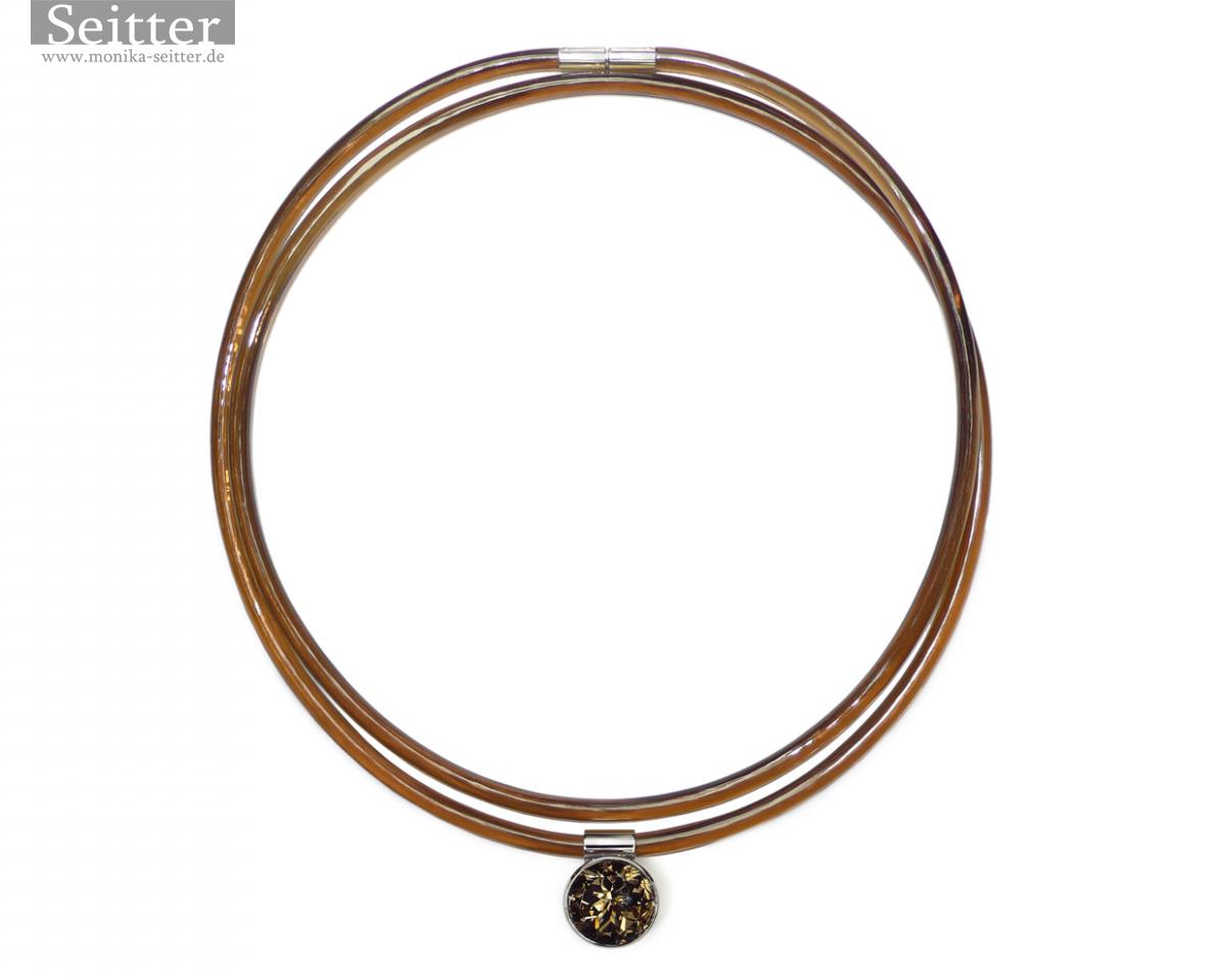 Irgendwann hatte sie den Dreh: farbige Kunststoffbänder, ein paar Mal spiralig um den Finger geschlungen, und obendrauf ein richtig juweliger Aufsatz mit Edelsteinen oder Perle. Seit sie diese Ringe entwickelt hat, ist Monika Seitter nicht mehr wegzudenken aus der Designschmuck-Szene.